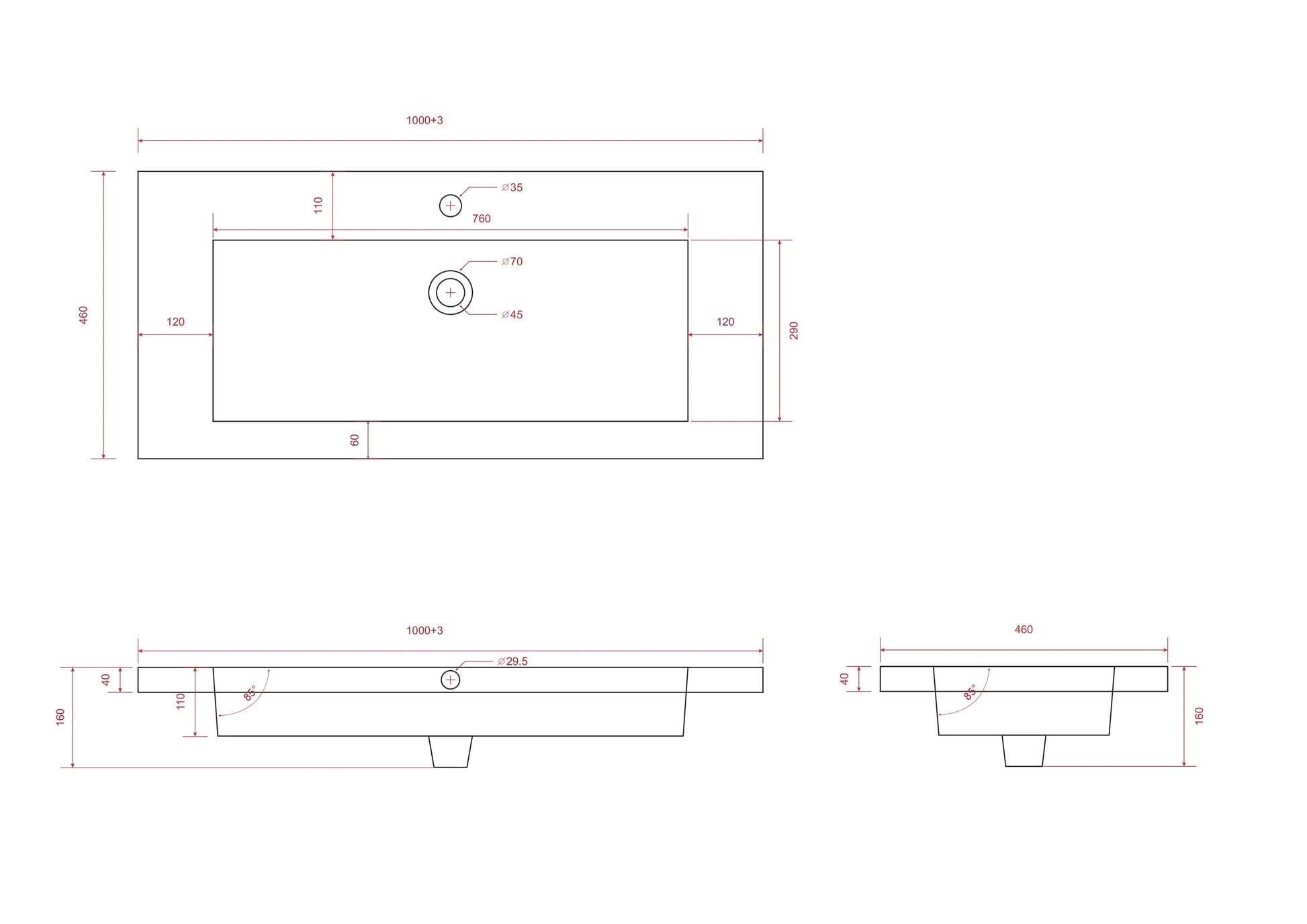 Please note: washbasin tap, drain plug and siphon are not included.