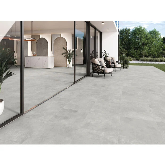 On this product page, you'll find detailed specifications and technical information for the Indeed Silver Warm 60x60 tiles, which are 9.5 mm thick. These tiles are suitable for both floors and walls, are made of ceramic, and have a concrete look. Each tile measures 59.5x59.5 cm and contains 1.42 m² per box.
