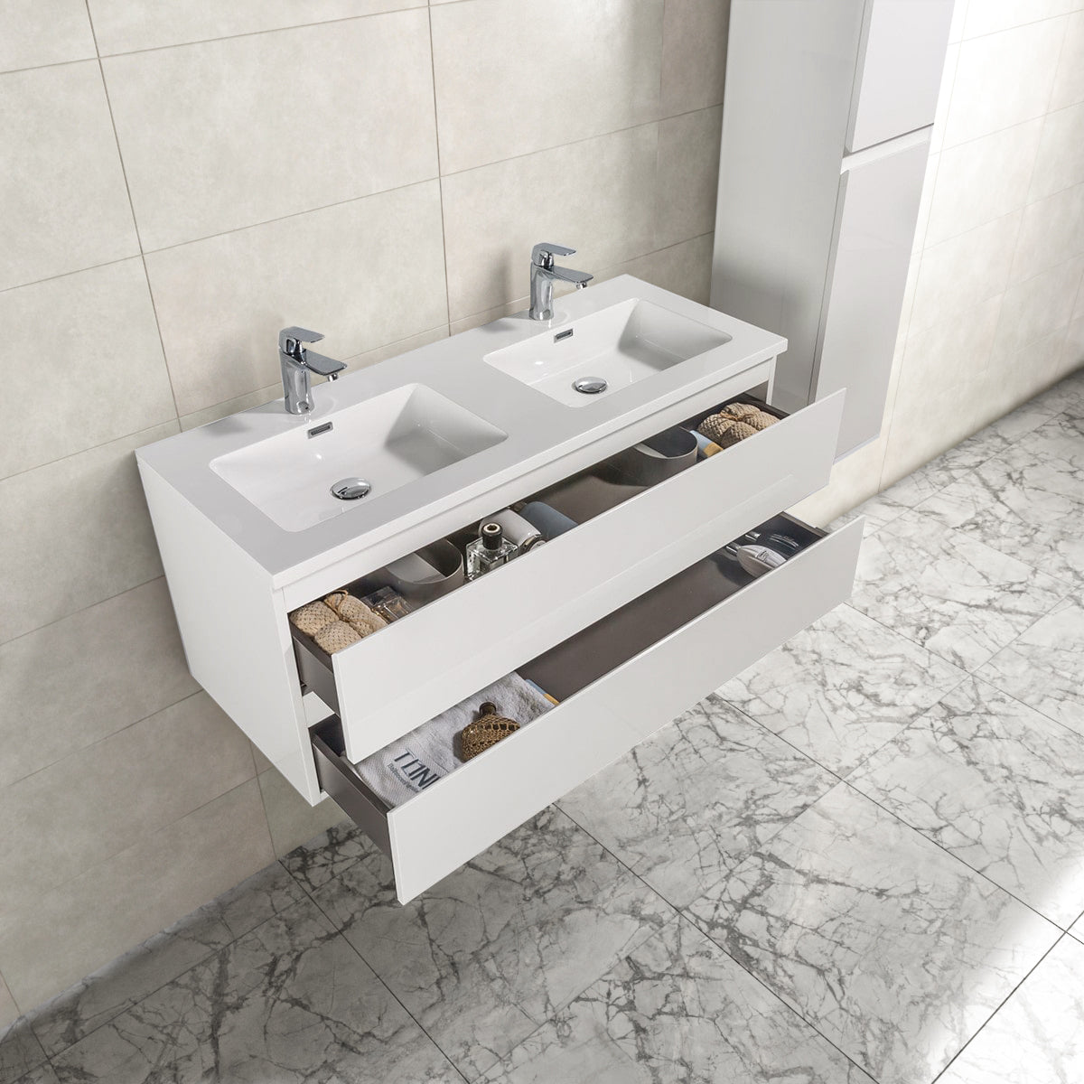 Badkamermeubel Tieme in hoogglans wit 120x50x48cm met witte wastafel.