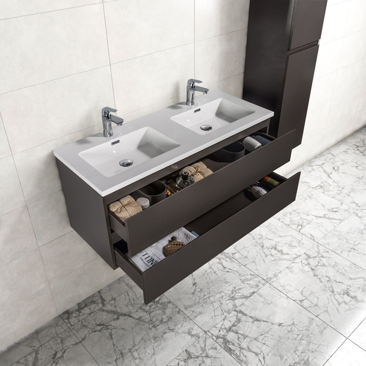 Badkamermeubel Tieme in mat grijs 120x50x48cm met witte wastafel.