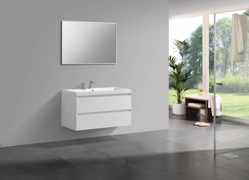 De set bestaat uit een onderkast, wastafel en spiegel. De Infinity serie kenmerkt zich door de strakke greeploze vormgeving.