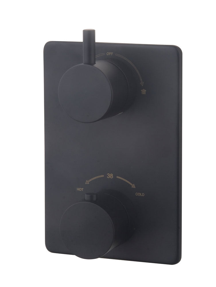 Afbouwdeel voor het inbouwdeel douchethermostaat (apart te bestellen), bestaande uit thermostaatknop, omstelknop(pen) en bodemplaat. Kleur: mat zwart