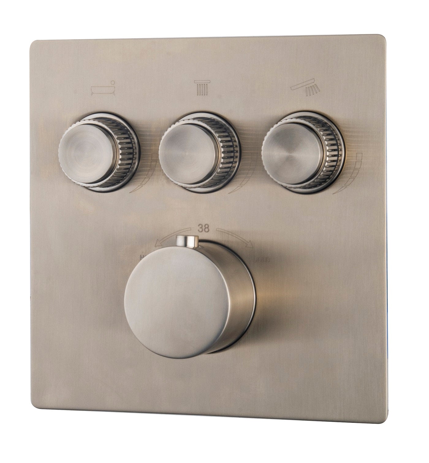 Kies voor luxe en comfort! De Caral Klik Pro is een stijlvolle en hoogwaardige inbouwthermostaat met Smartcontrol. Dit Caral Klik Pro afbouwdeel voor de inbouwthermostaat 3-weg heeft de kleur geborsteld staal en heeft 3 functies. Zo kun je eenvoudig in één klik schakelen tussen de handdouche, hoofddouche en baduitloop. Door middel van de Smartcontrol bedieningsknoppen is de mengkraan gemakkelijk aan en uit te zetten. Daarnaast bepaal je door te draaien de gewenste waterdruk. De watertemperatuur is thermostatisch te regelen en heeft een begrenzer op 38°c. Dit maakt dat de kraan ook veilig te gebruiken is door kinderen.
