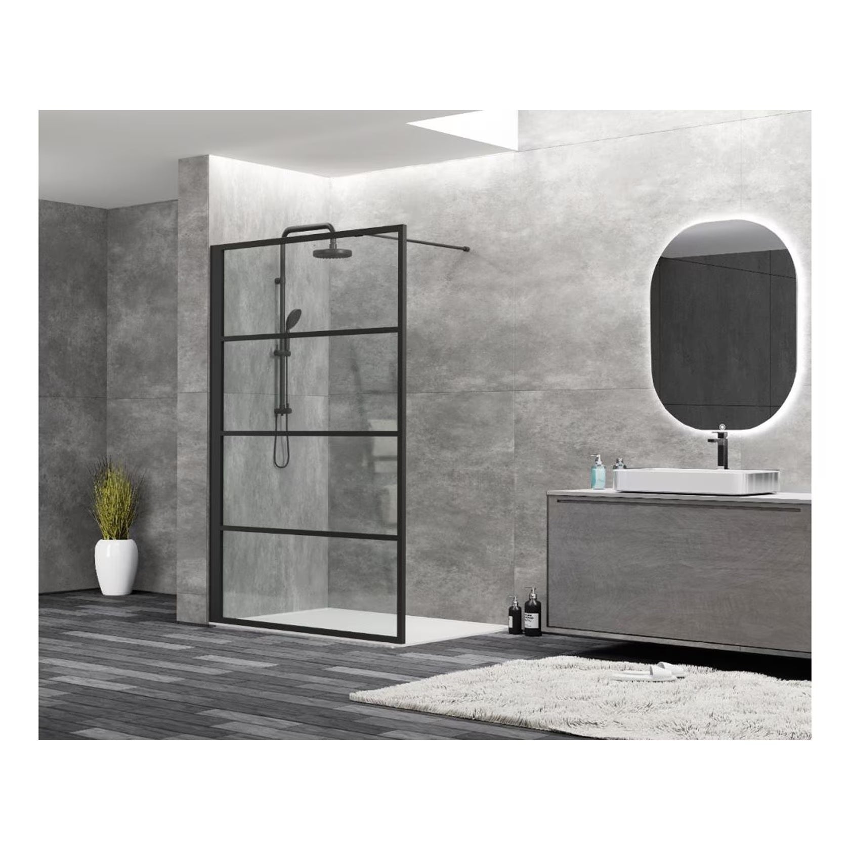 - 1x By Goof Mila douchewand 120x200 cm helder glas mat zwart raster