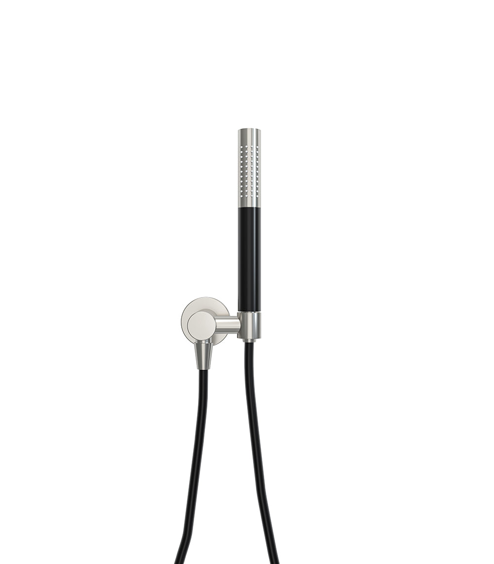 UniMatch handdoucheset met staafhanddouche 1 stand, doucheslang en wandaansluitbocht geborsteld staal/mat zwart