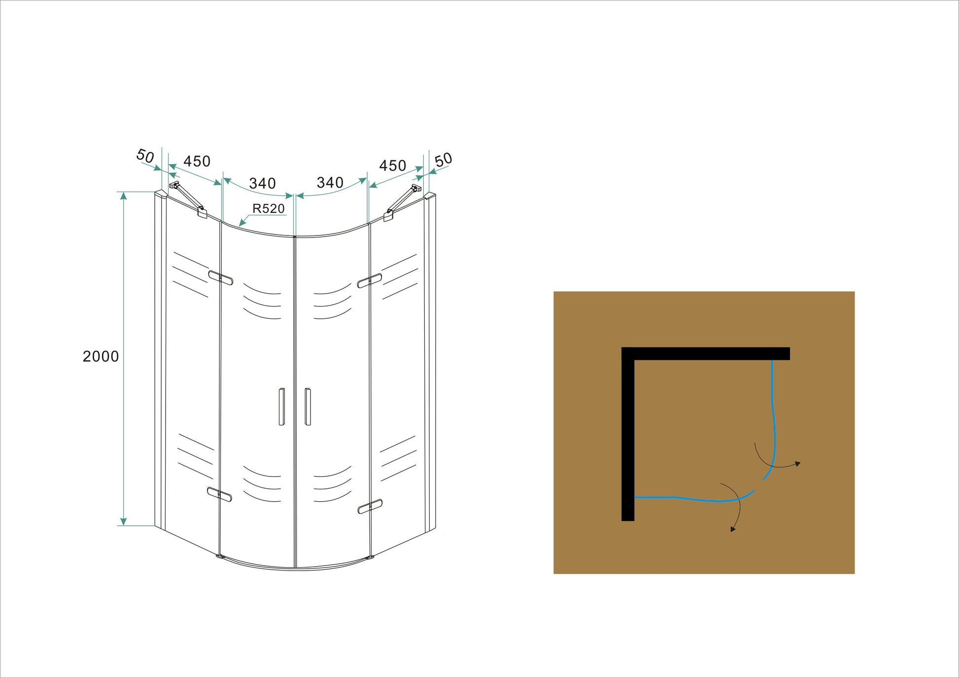 De profielen zijn 20mm aan beide zeiden naar binnen verstelbaar. - Kan rechtstreeks op de vloer of op een douchebak gemonteerd worden.