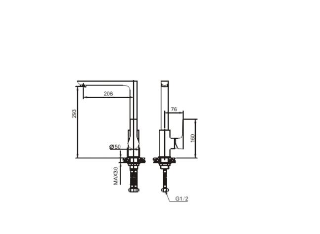 - Hoogte uitloop: 29,3 cm.