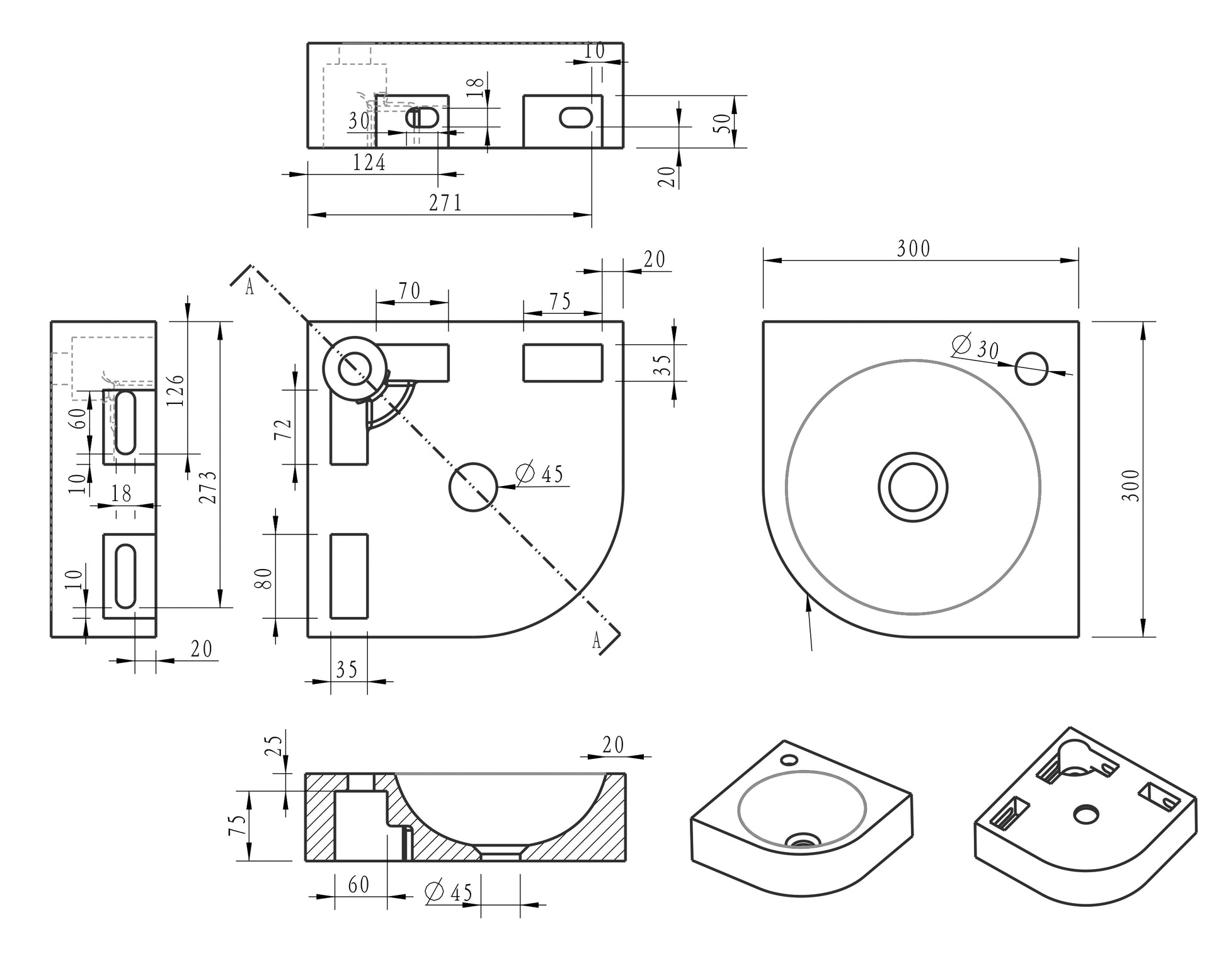 - Diameter afvoergat: 4,5 cm.