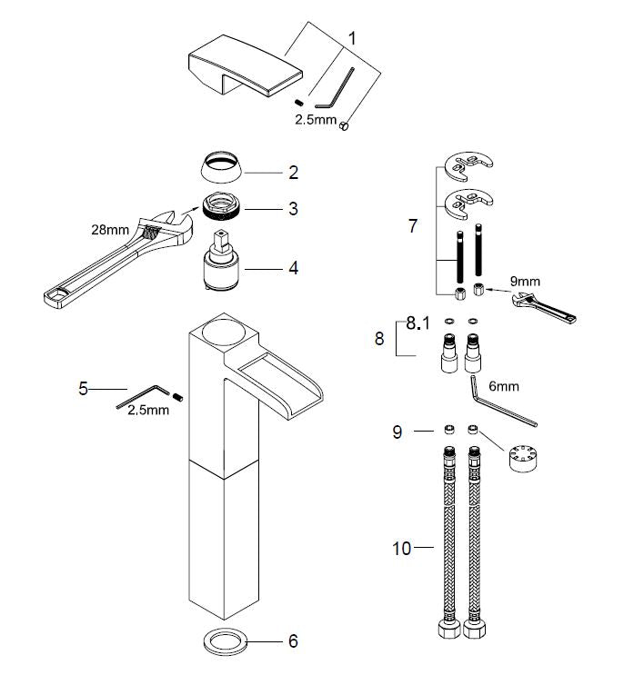 - Hoogte kraan: 32.5cm