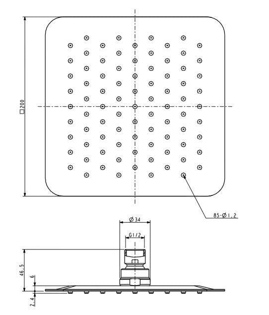 Luxe rvs hoofddouche vierkant 20 cm x 0,2 cm chroom.
