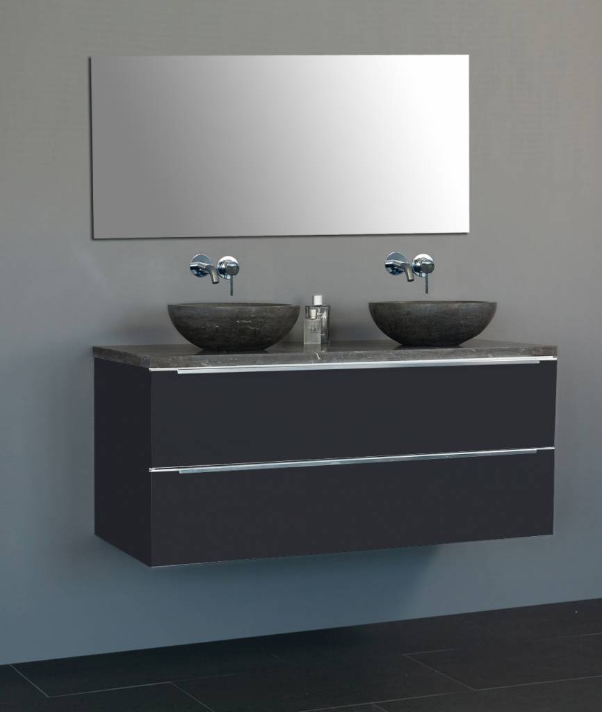 Badmeubel Senza Dynasty met 2 ronde kommen 120 Hoogglans Antraciet