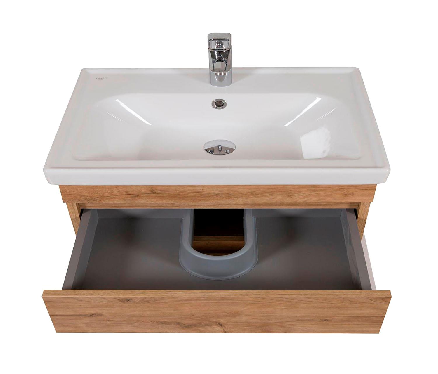Badkamermeubel Finn 60x59x45cm Licht Eiken met keramische wastafel in de kleur Licht Eiken (Mat) en is gemaakt van Gemelamineerd Spaanplaat.
