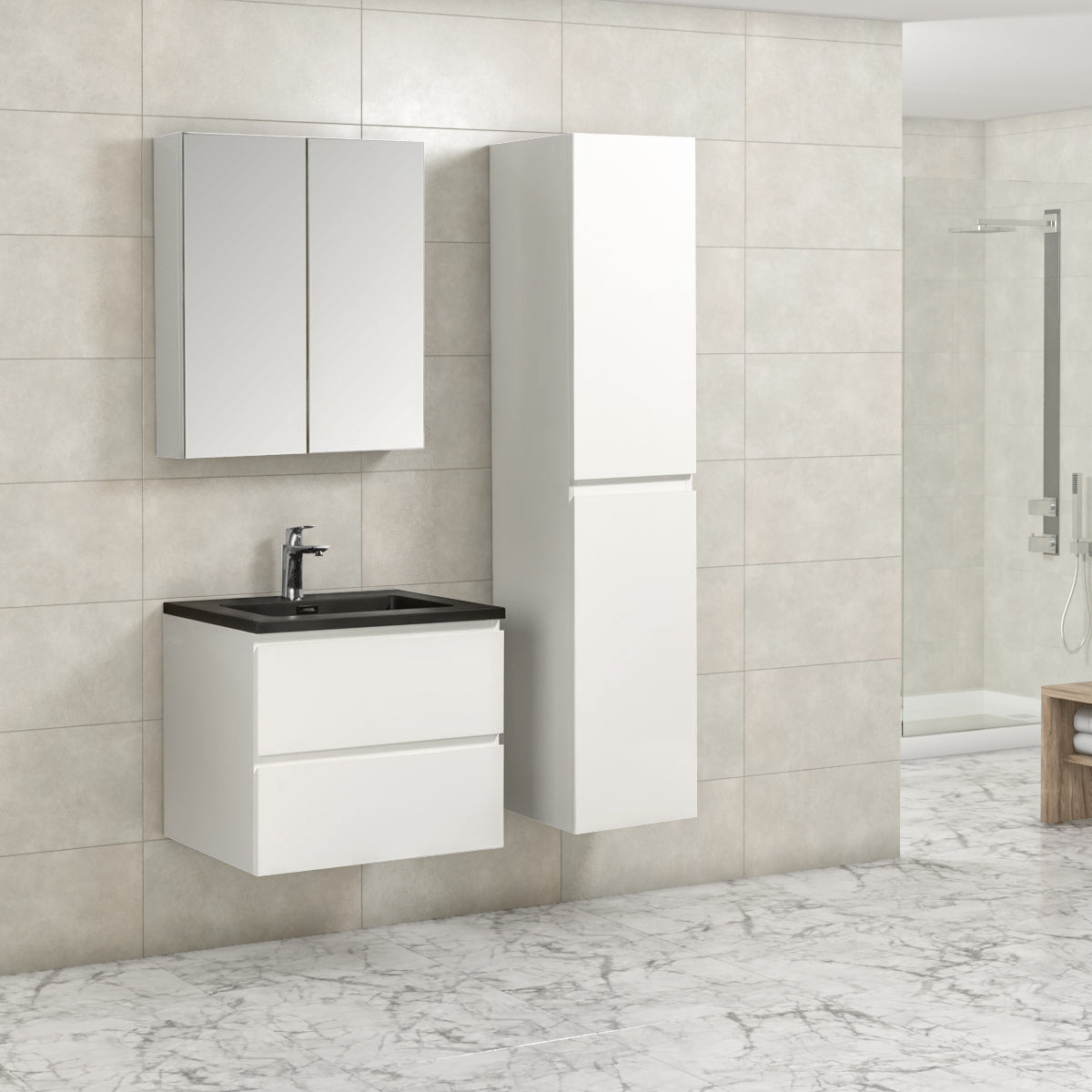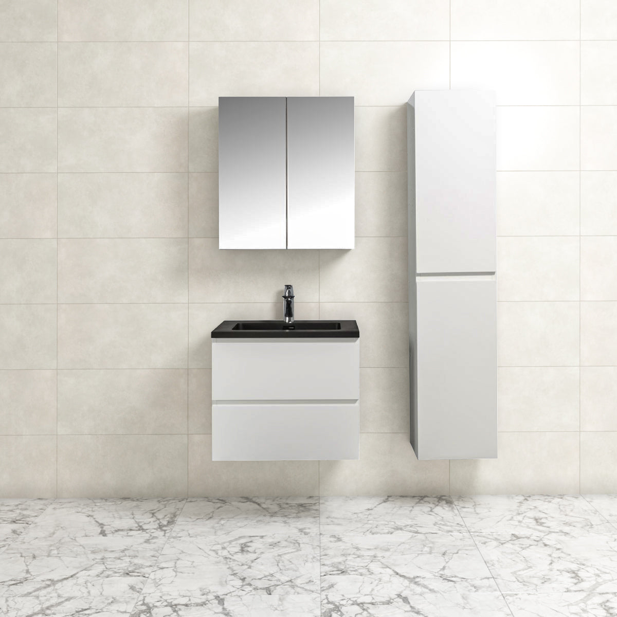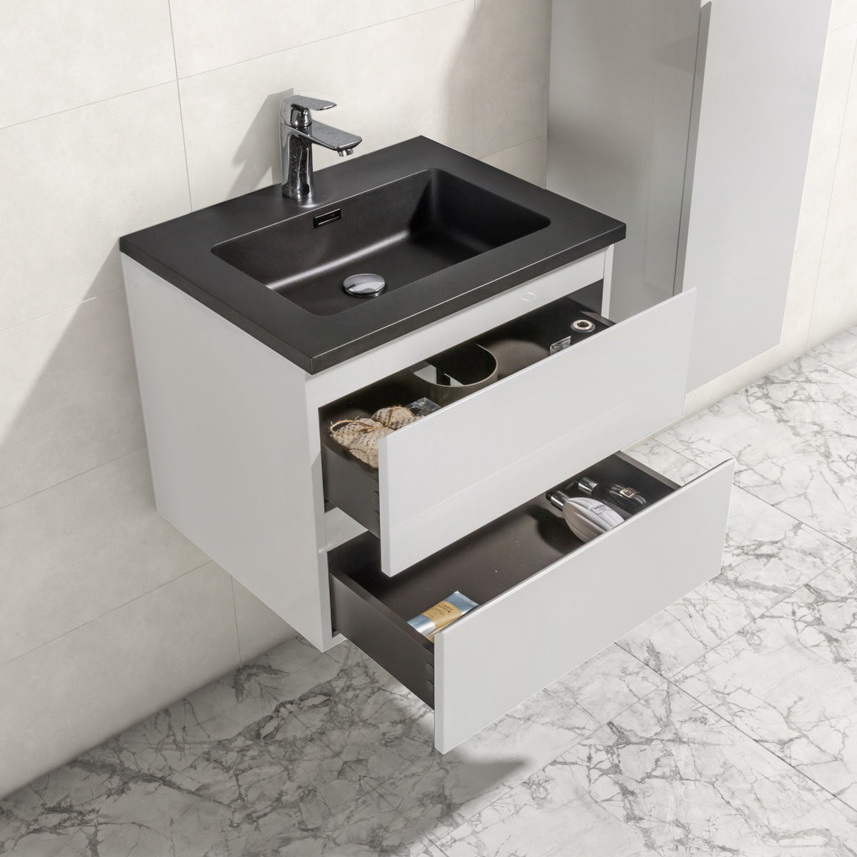Badkamermeubel Tieme in hoogglans wit 60x50x48cm met zwarte wastafel.