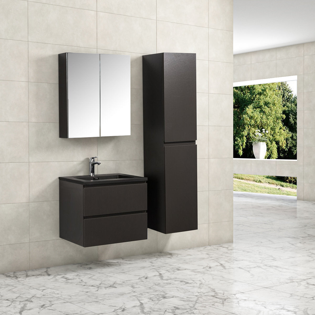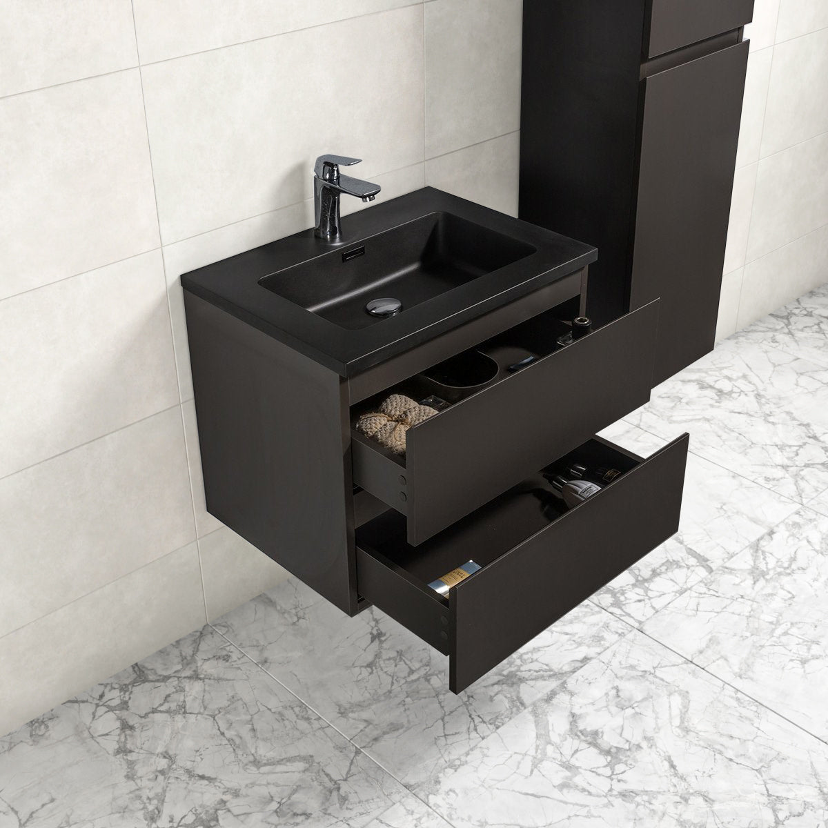 Badkamermeubel Tieme in mat grijs 60x50x48cm met zwarte wastafel.