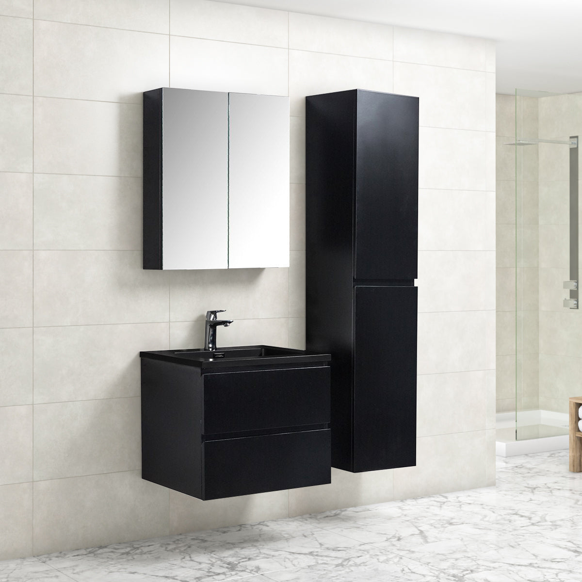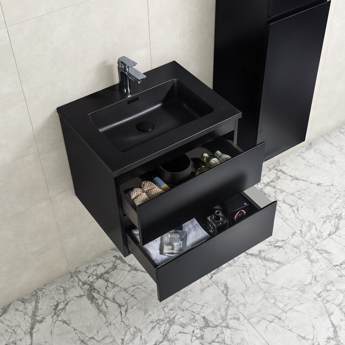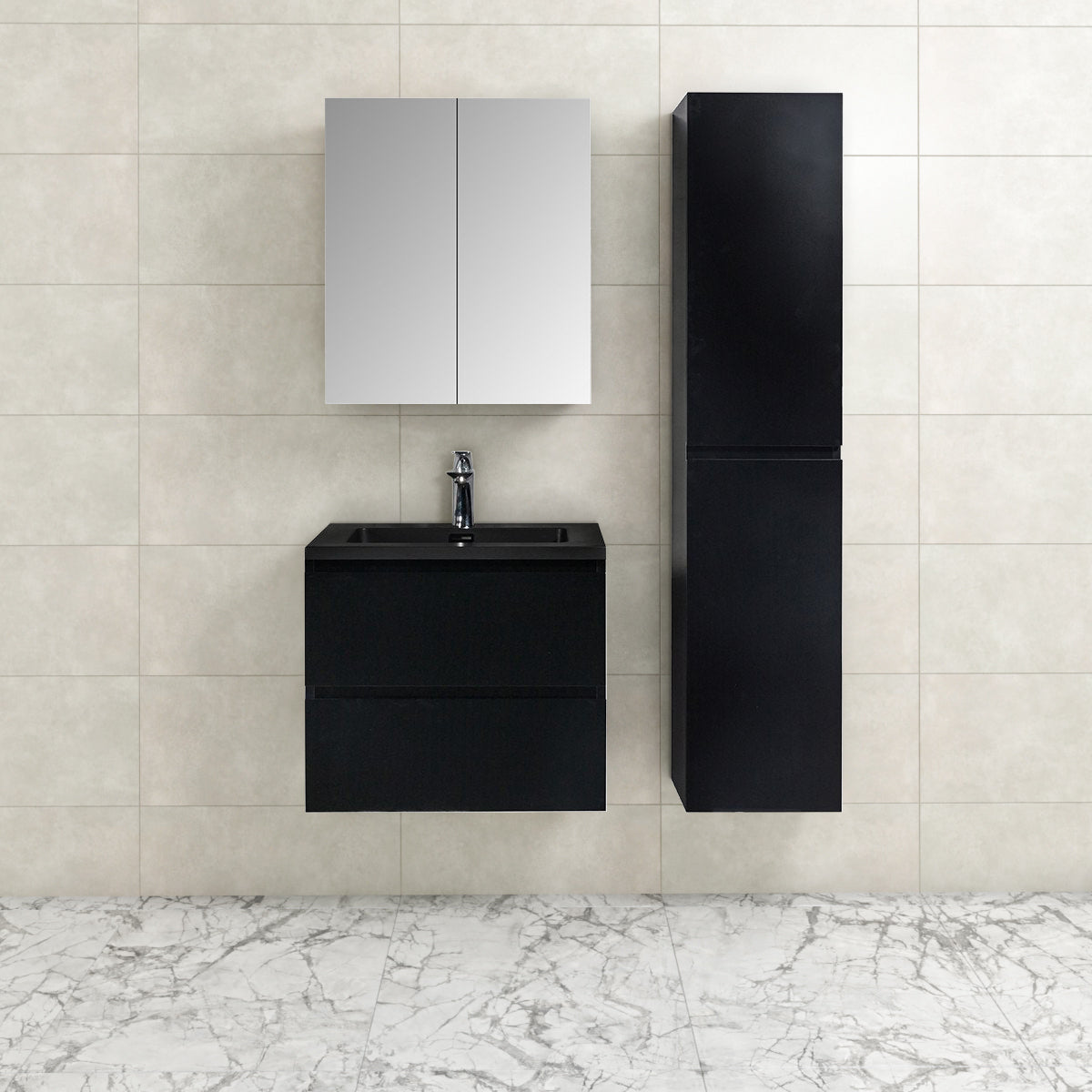 Badkamermeubel Tieme in mat zwart 60x50x48cm met zwarte wastafel.