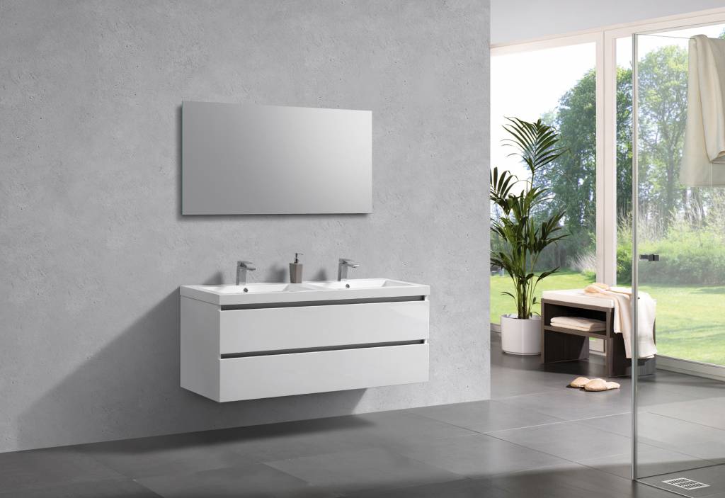 De set bestaat uit een onderkast, wastafel en spiegel. De Trendline serie kenmerkt zich door de strakke greeploze vormgeving.