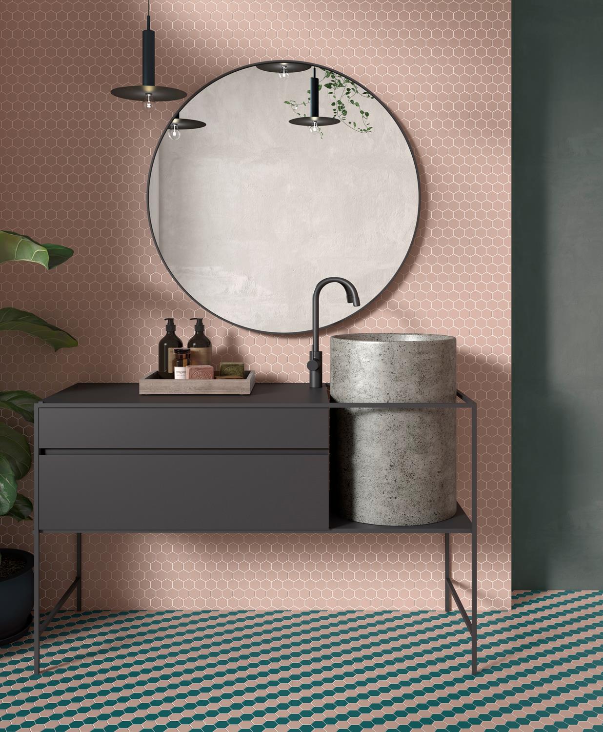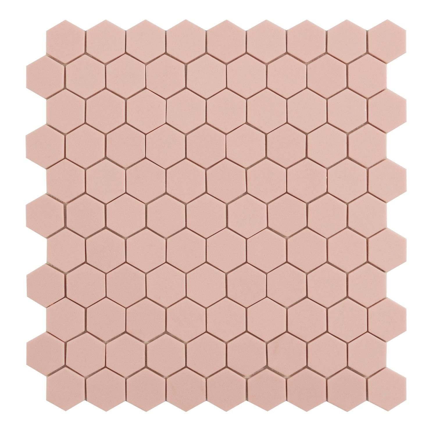 Ontdek de tijdloze elegantie van onze Mozaiek Tegels Hexagon Pink 3,5x3,5cm van het merk By Goof. De tegels hebben een dikte van 5mm en zijn gelijmd op matjes van 30x30 cm. De mozaïek tegels kunnen zowel gebruikt worden als vloertegels en wandtegels. De prachtige kleurrijke uitstraling van de By Goof hexagon geeft uw badkamer, keuken of toilet een extra luxueuze touch. Geniet van de duurzame kwaliteit en laat uw ruimtes stralen met de verfijnde schoonheid van deze mozaiek tegels. Eén doos zitten 10 stuks matjes van 30x30 cm met een oppervlakte van 0,87 m2.
