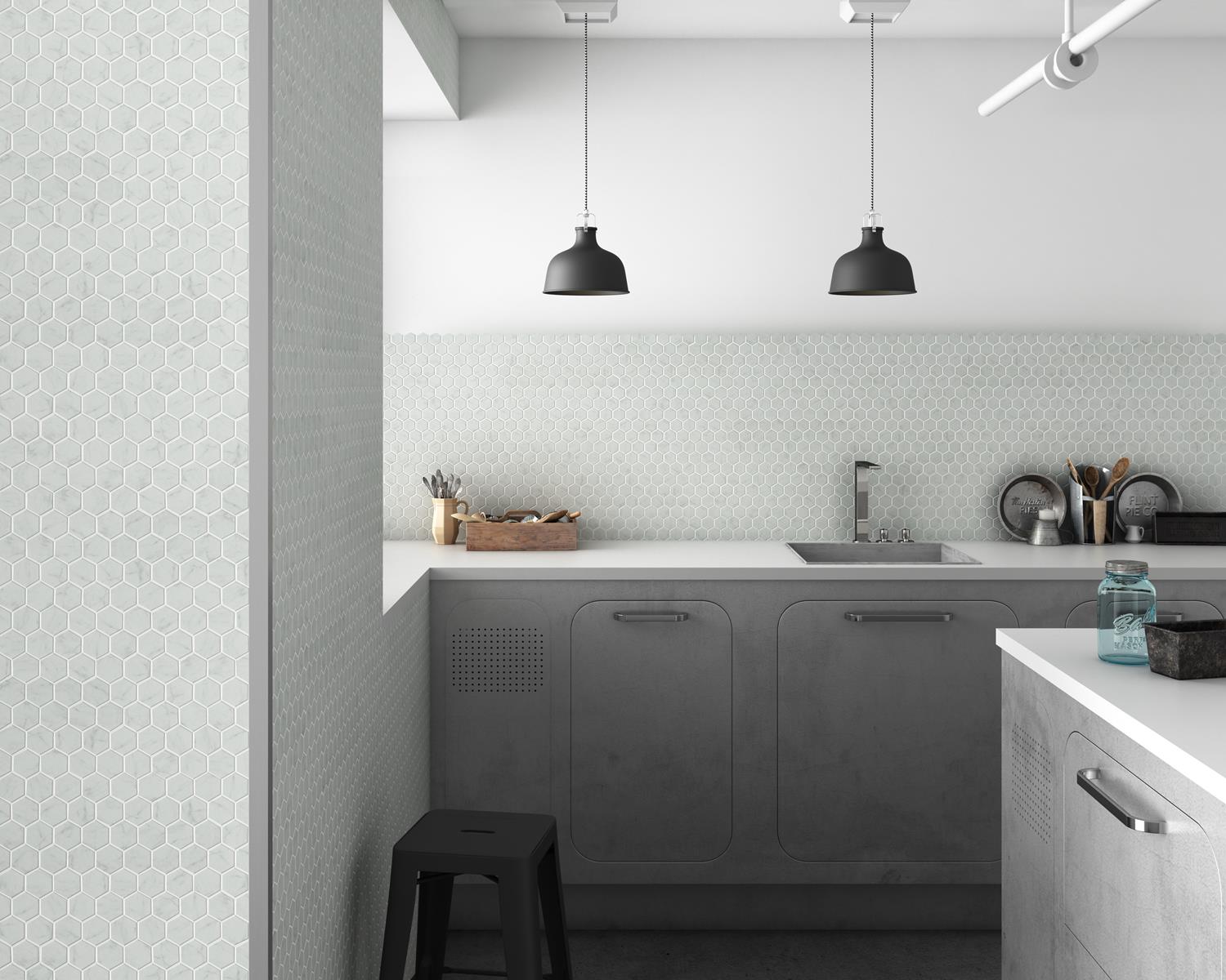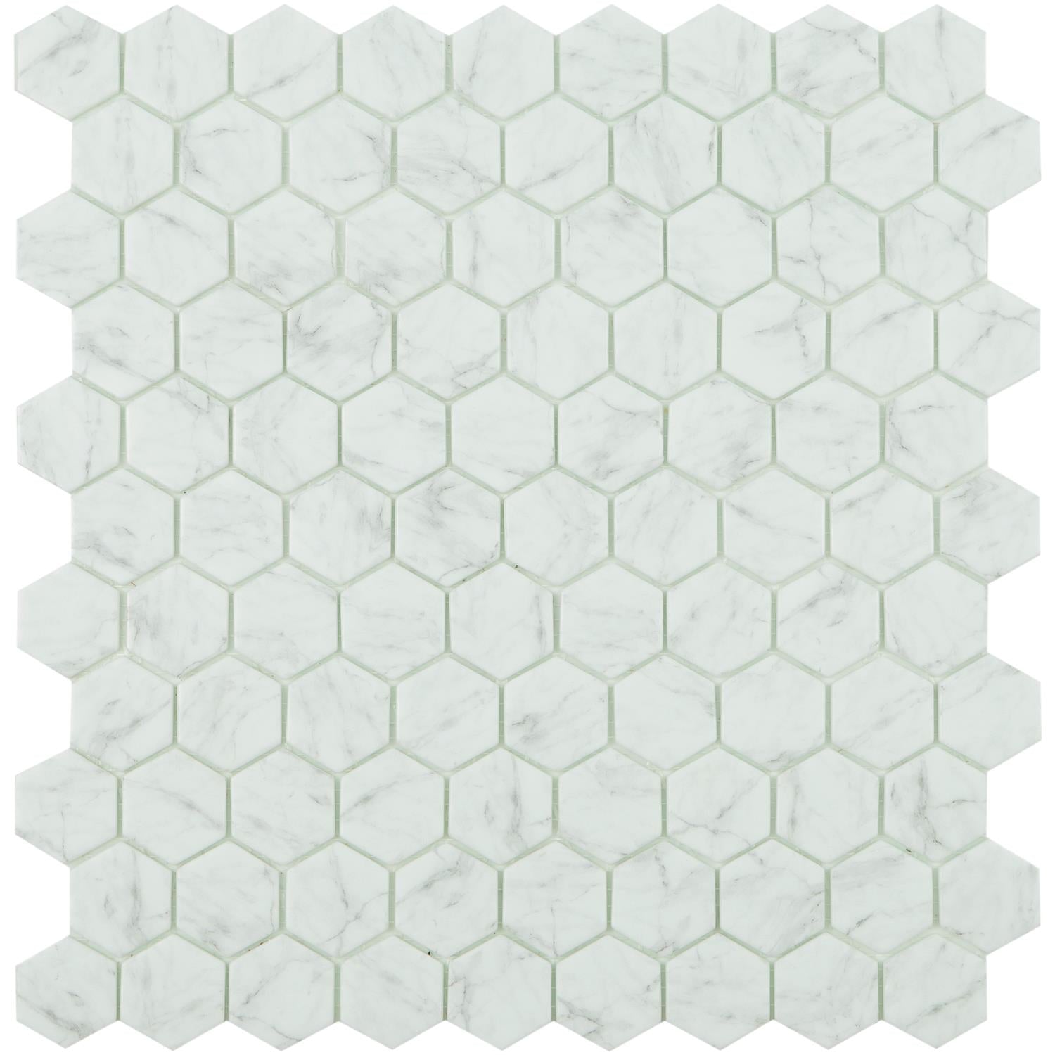 Ontdek de tijdloze elegantie van onze Mozaiek Tegels Hexagon Statuario 3,5x3,5cm. De tegels hebben een dikte van 5mm en zijn gelijmd op matjes van 30x30 cm. De mozaïek tegels kunnen zowel gebruikt worden als vloertegels en wandtegels. De prachtige marmeren uitstraling van de Statuario geeft uw badkamer, keuken of toilet een extra luxueuze touch. Geniet van de duurzame kwaliteit en laat uw ruimtes stralen met de verfijnde schoonheid van deze mozaiek tegels. Eén doos zitten 10 stuks matjes van 30x30 cm met een oppervlakte van 0,87 m2.