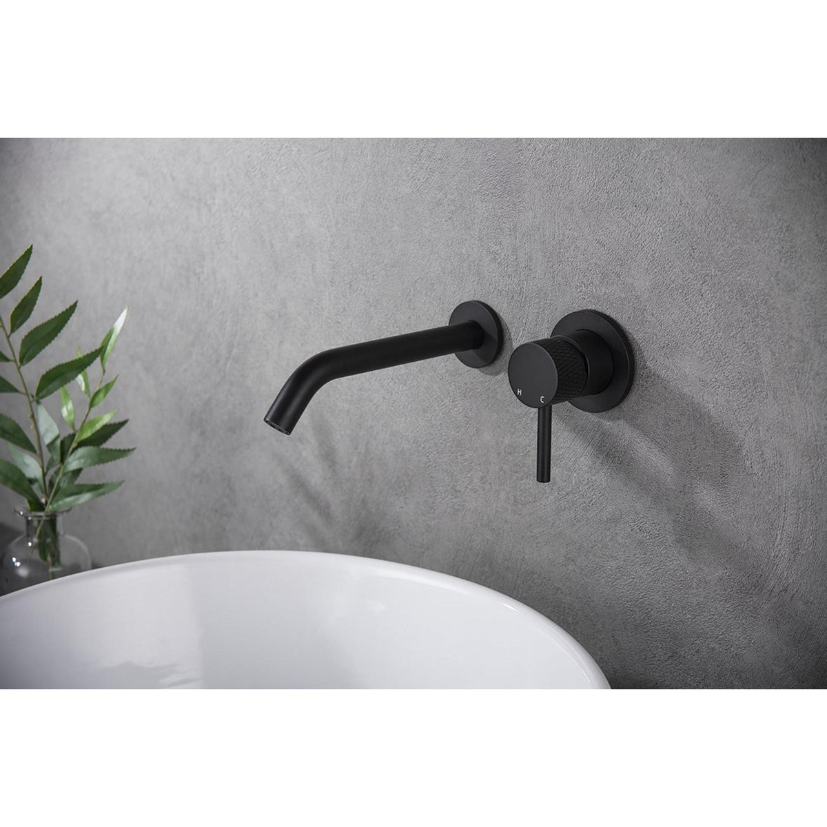 Ribbd inbouw-wastafelmengkraan eenhendel mat zwart