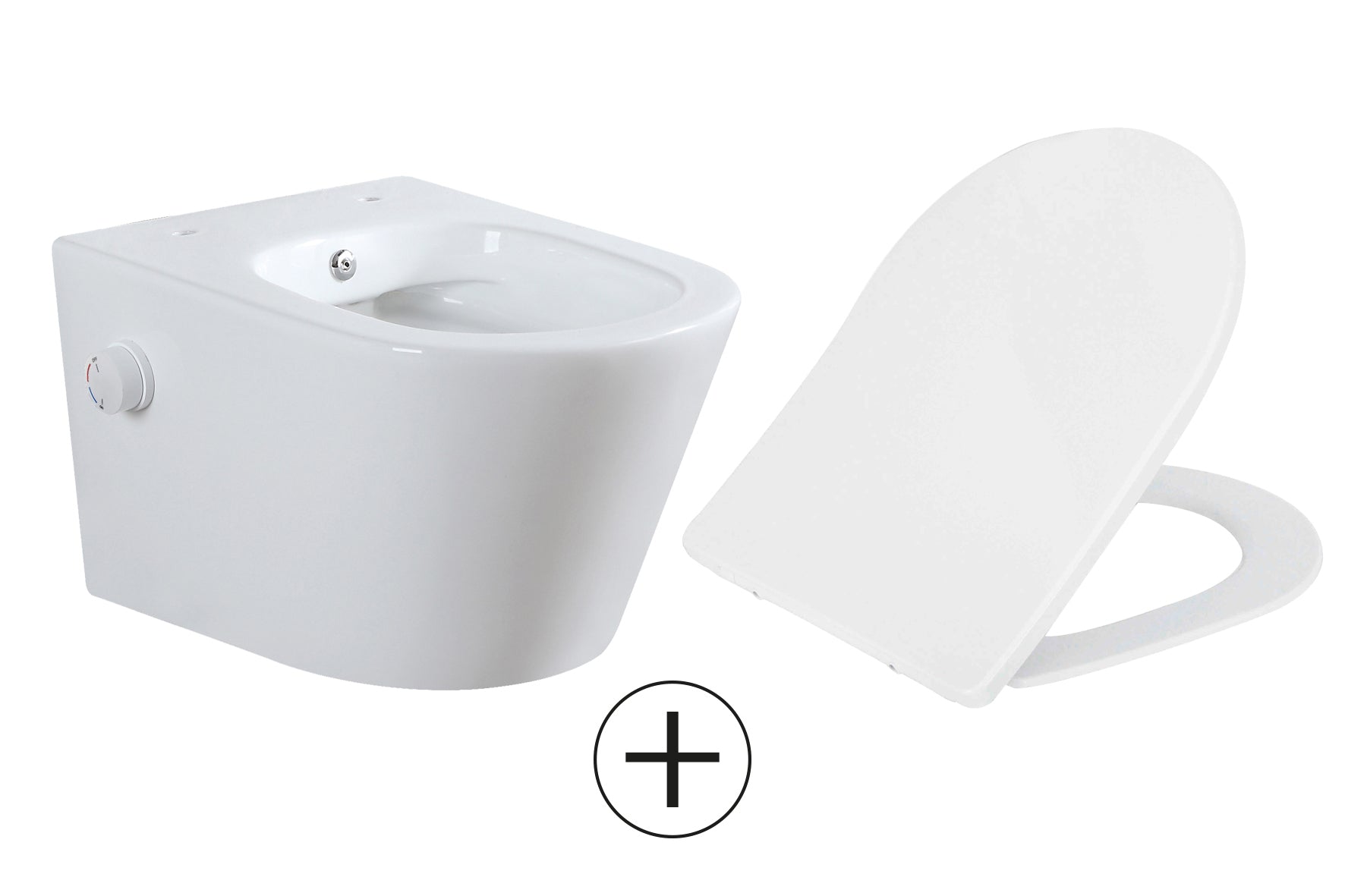 Vesta wandcloset rimless met bidetkraan warm koud water met Shade slim toiletzitting glans wit