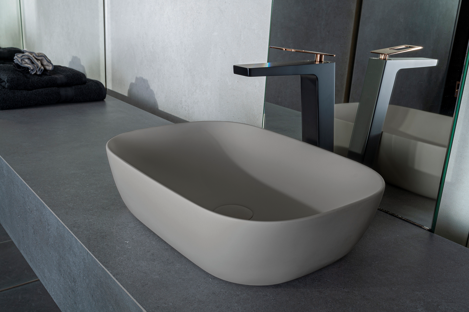 Ontdek de Waskom Maud 46x34x12,2 cm - Greige van het merk By Goof, geselecteerd voor topkwaliteit. Vervaardigd uit duurzaam Solid Surface materiaal, biedt deze waskom een perfecte mix van stijl, functionaliteit en gemak. Bekijk de specificaties voor levertijd en transformeer je badkamer met deze hoogwaardige aanwinst!