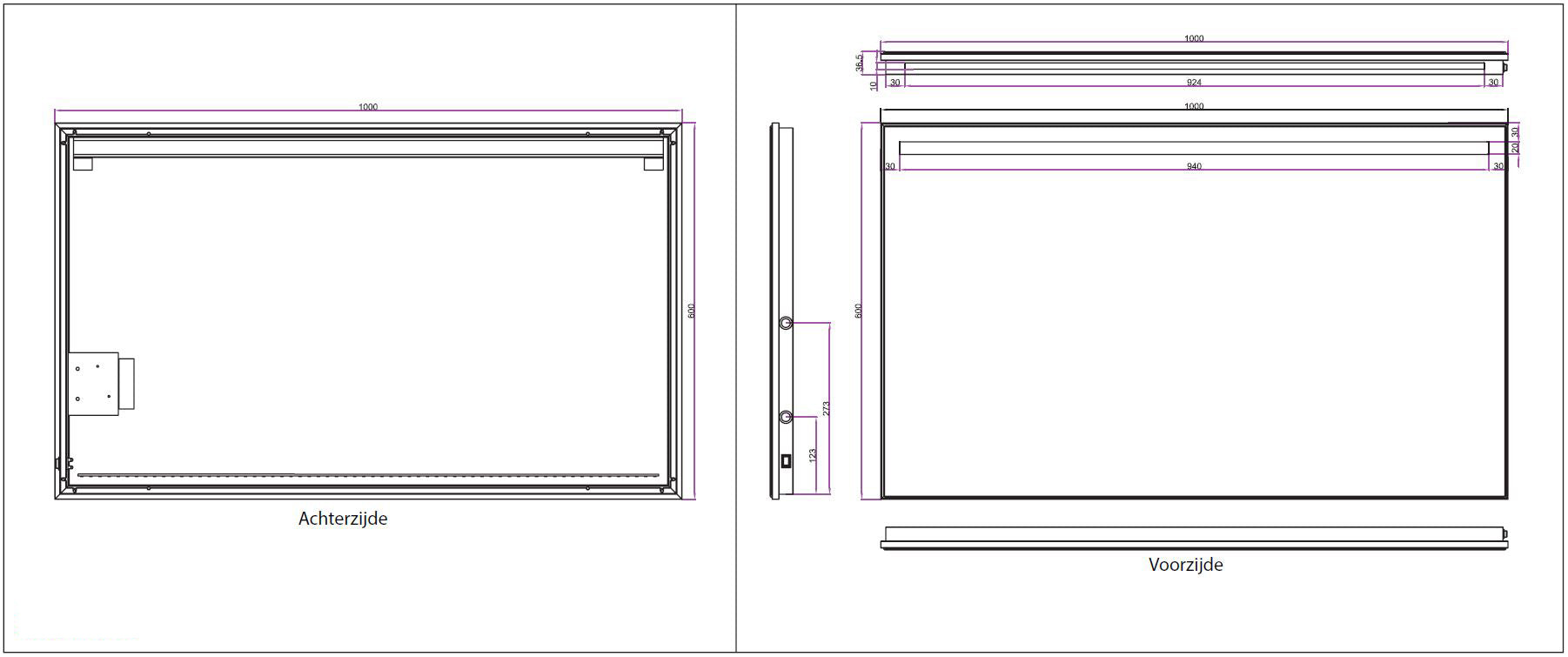 - Voorzien van spiegelverwarmings-matje van 25x35cm.
