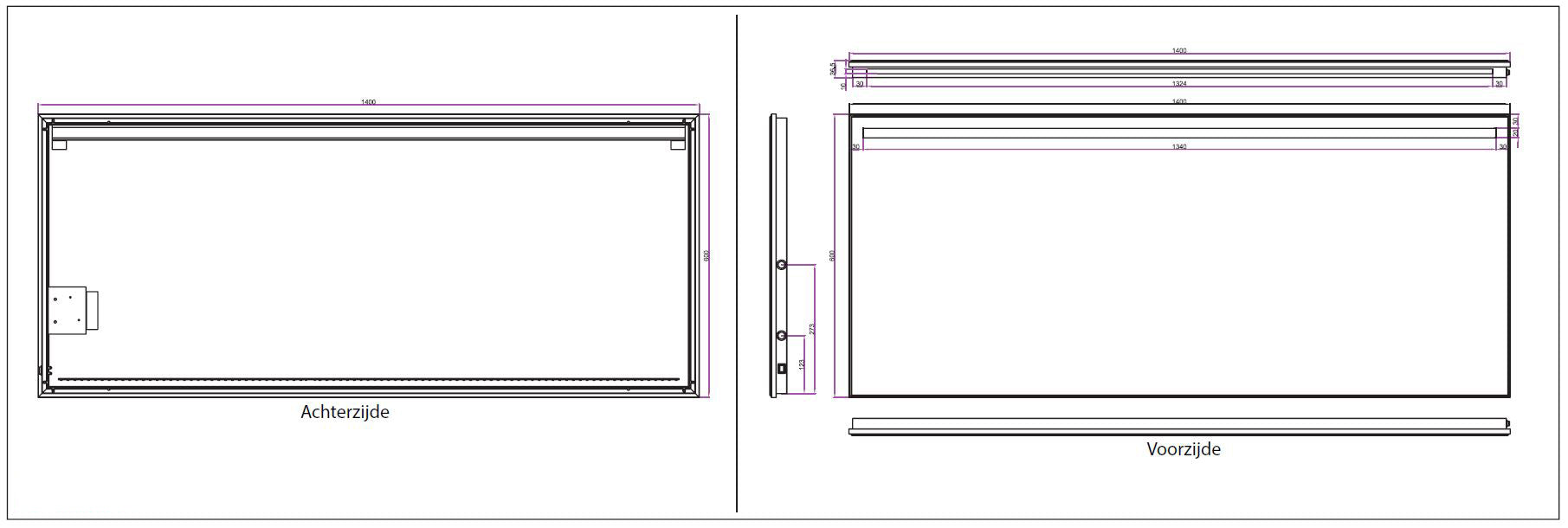 - Voorzien van spiegelverwarmings-matje van 25x35cm.