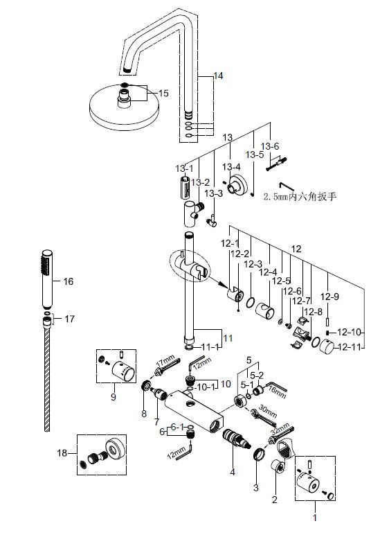 De Wiesbaden Caral douche-opbouwset + thermostaatkraan chroom is 119 cm hoog, 28,6 cm breed en heeft een voorsprong van 36,4 cm. Dit product wordt geleverd met een thermostatische kraan en heeft een verstelbare handdoucheset.