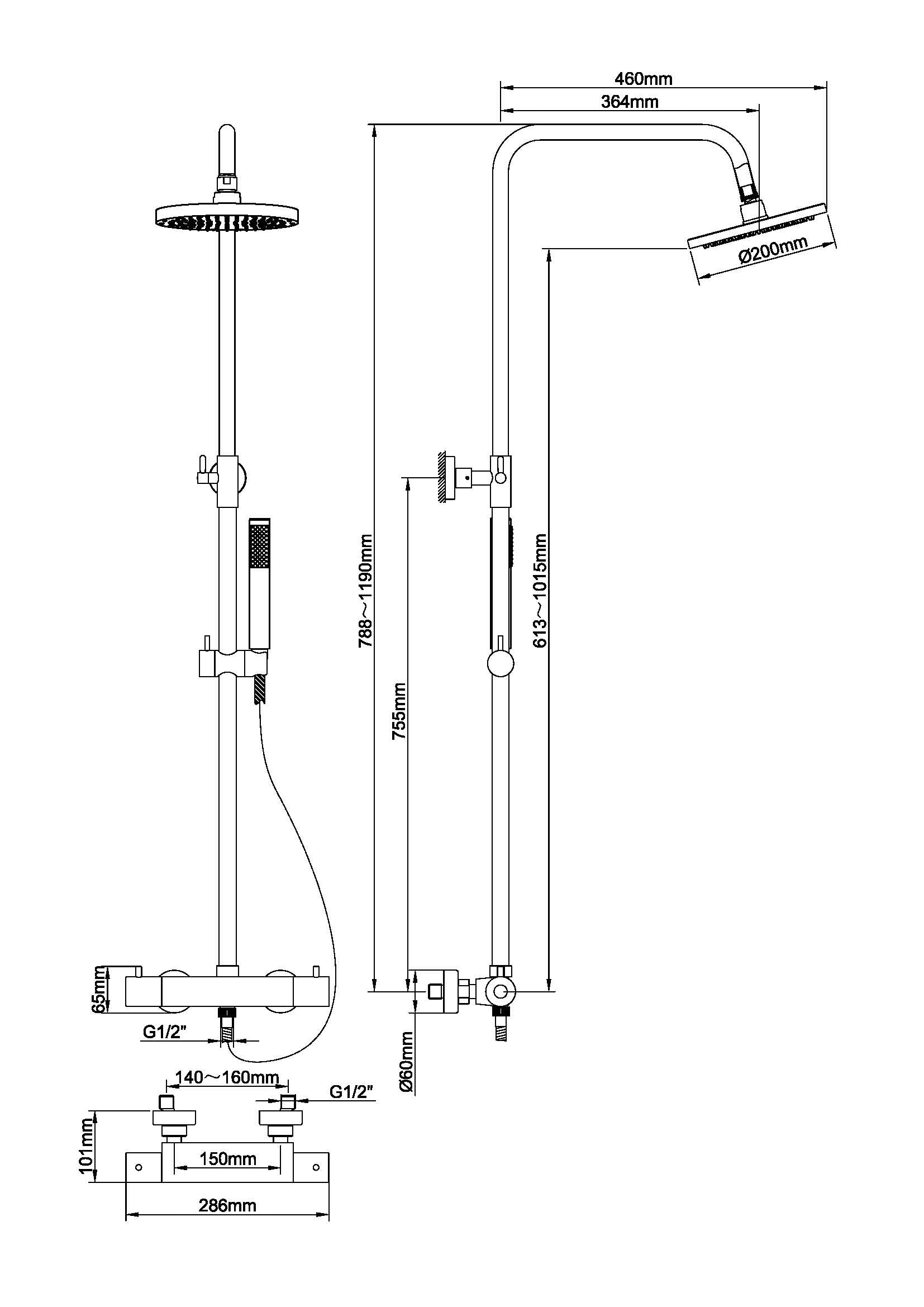 De Wiesbaden Caral douche-opbouwset + thermostaatkraan geborsteld messing is 119 cm hoog, 28,6 cm breed en heeft een voorsprong van 36,4 cm. Dit product wordt geleverd met een thermostatische kraan en heeft een verstelbare handdoucheset.