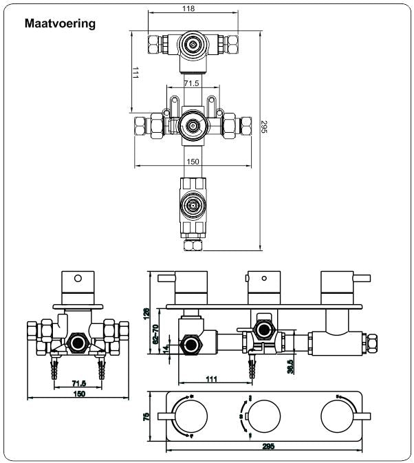 Caral inbouw 3-wegs douchethermostaat rond chroom