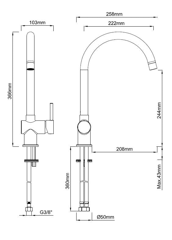 De Caral keukenmengkraan van Wiesbaden is erg geschikt voor moderne keukens. Met de eenhendel bediening meng je het warme en het koude water tot de gewenste temperatuur. Deze kraan is makkelijk te monteren. De uitloop van de kraan is flexibel, waardoor je makkelijker jouw vaat kunt afspoelen. De praktische kraan is afgewerkt in een mat zwarte kleur. Een uitermate stijlvolle vervanger van je huidige kraan.