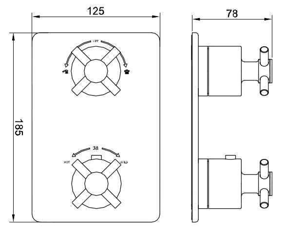 De Cross afbouwdeel inbouwthermostaat van het kwaliteitsmerk Wiesbaden is een ware luxe voor iedere badruimte. Het materiaal is van Messing en is eengreeps. Oppervlaktebehandeling is gepolijst en geschroomd. Montagewijze is in te bouwen in de muur.