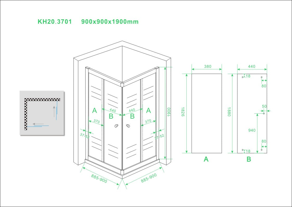 - Afmeting: 90 x 90 x 190 cm. (l x b x h)