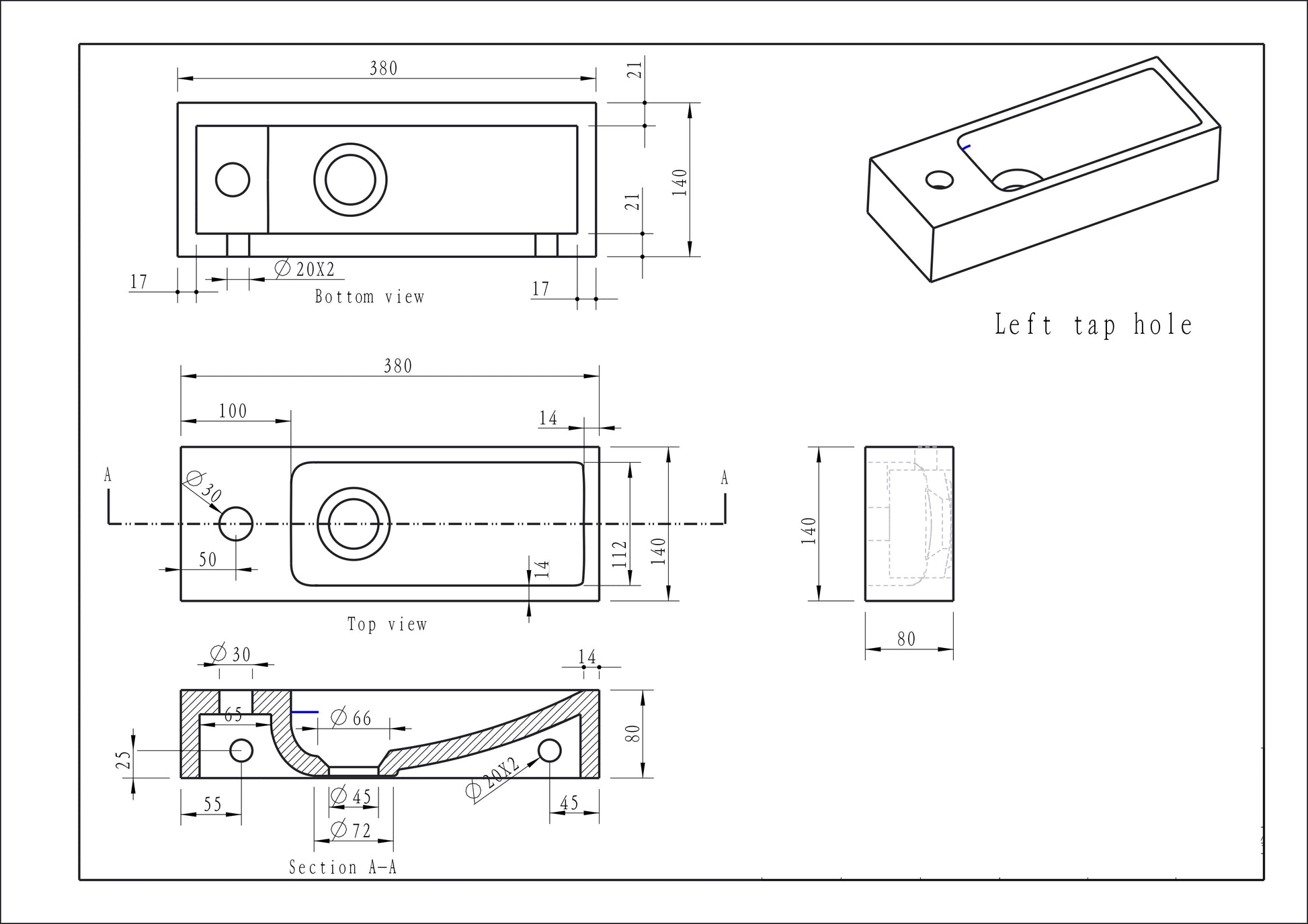 - Diameter afvoergat: 4,5 cm.