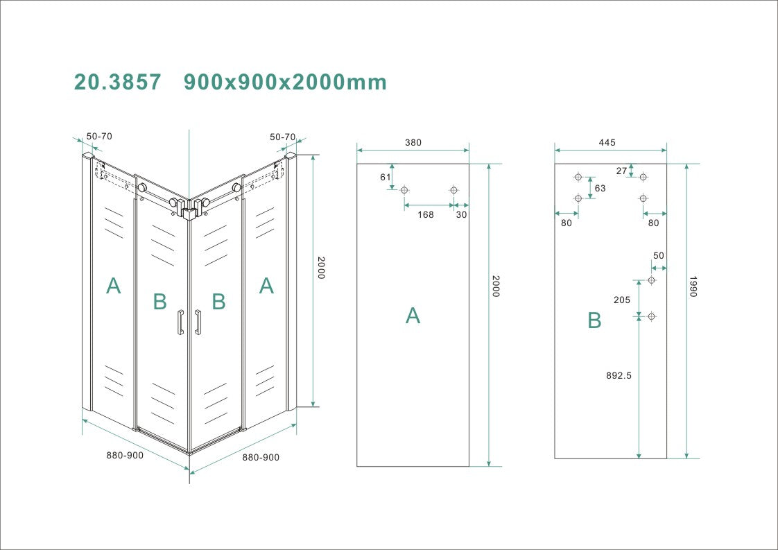 Wiesbaden hoekinstap + 2 schuifdeuren 90x90x200 cm - 8mm NANO glas.
