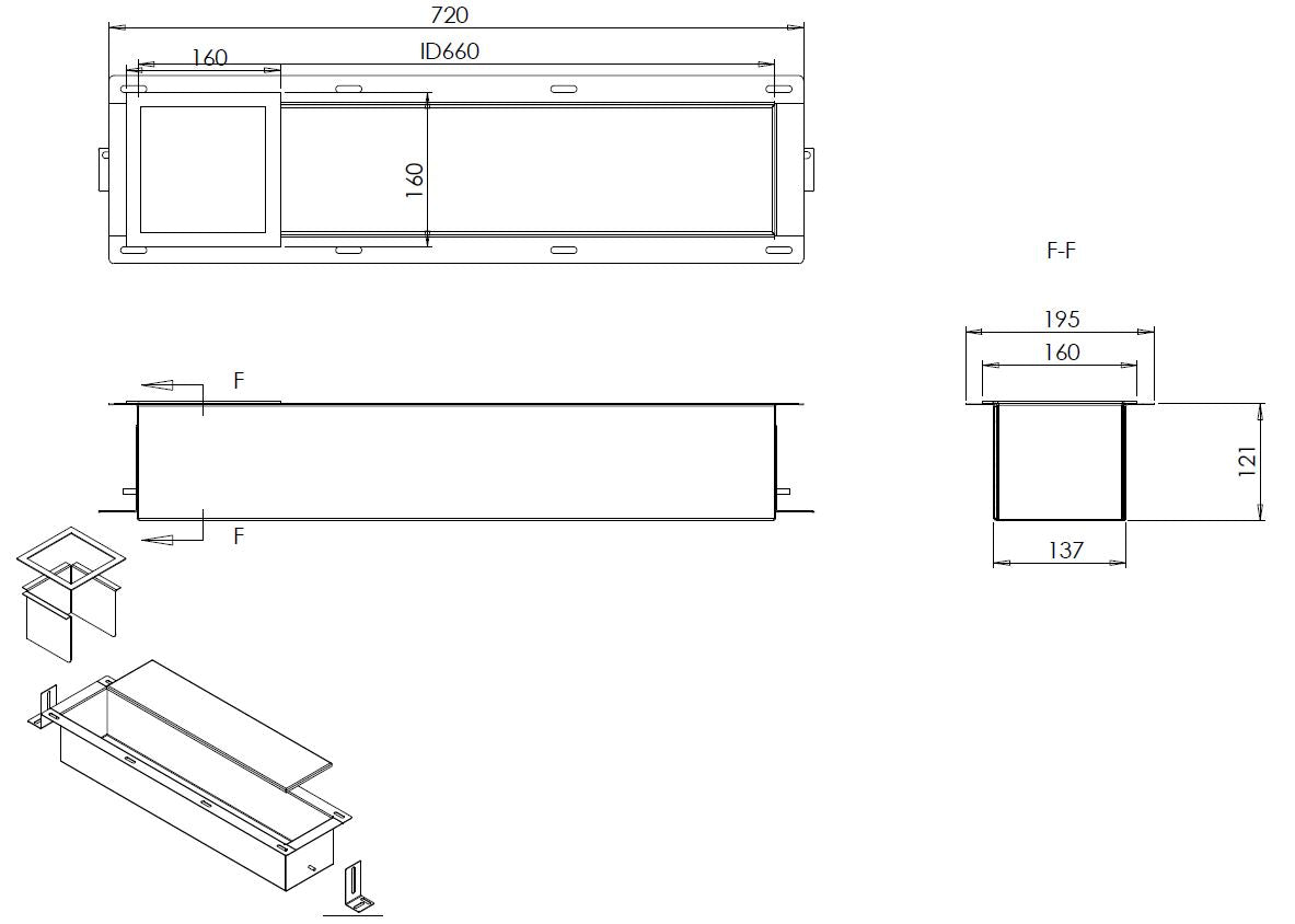 - Inbouwmaten: 14 x 66 x 12 cm.