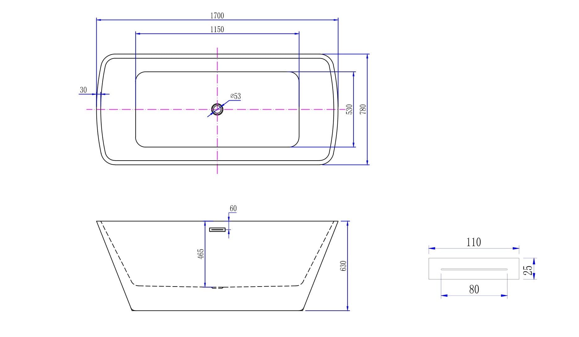 Wiesbaden Larx Vrijstaand Ligbad 170 x 78 cm.