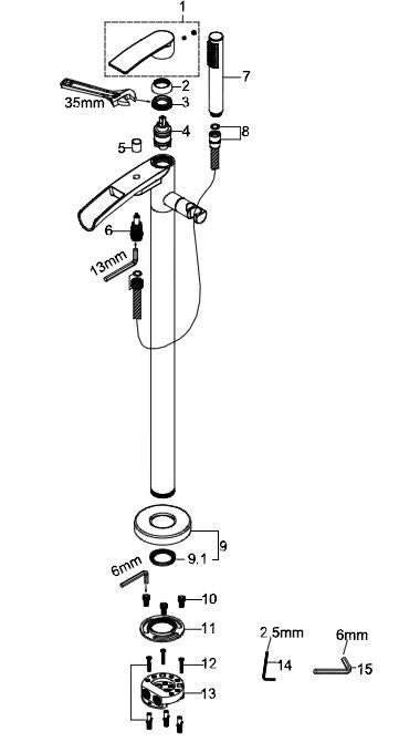 Wiesbaden Lima vrijstaande badmengkraan waterval compleet chroom