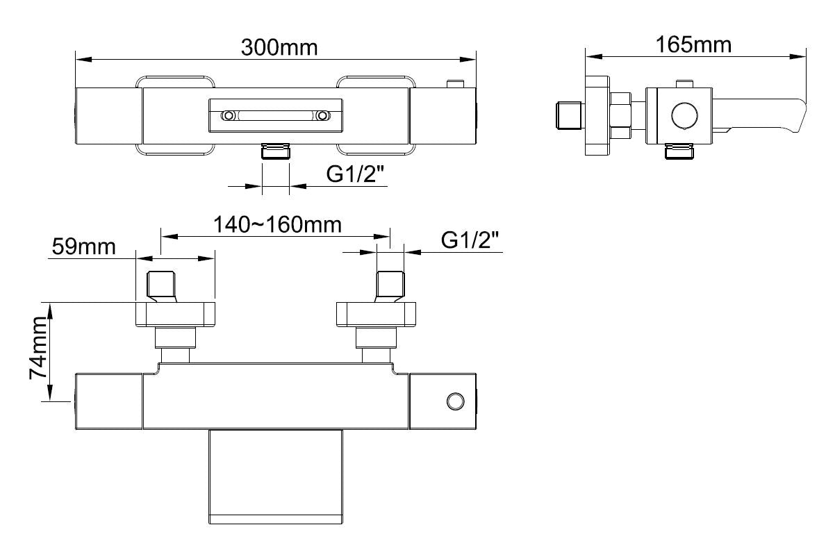 Wiesbaden Rombo thermostatische badmengkraan 15cm - Mat zwart.