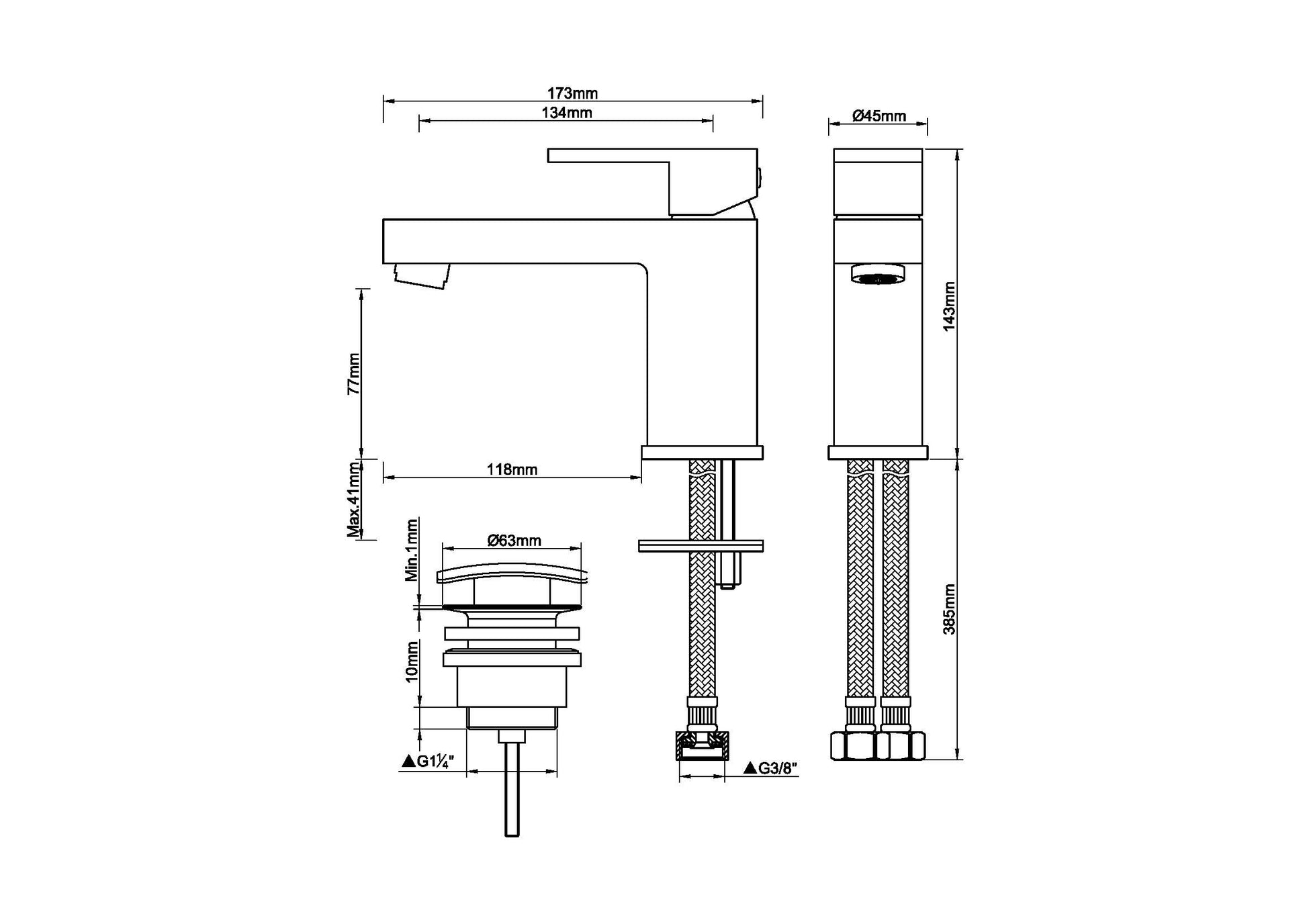 - Hoogte kraan: 14.3cm