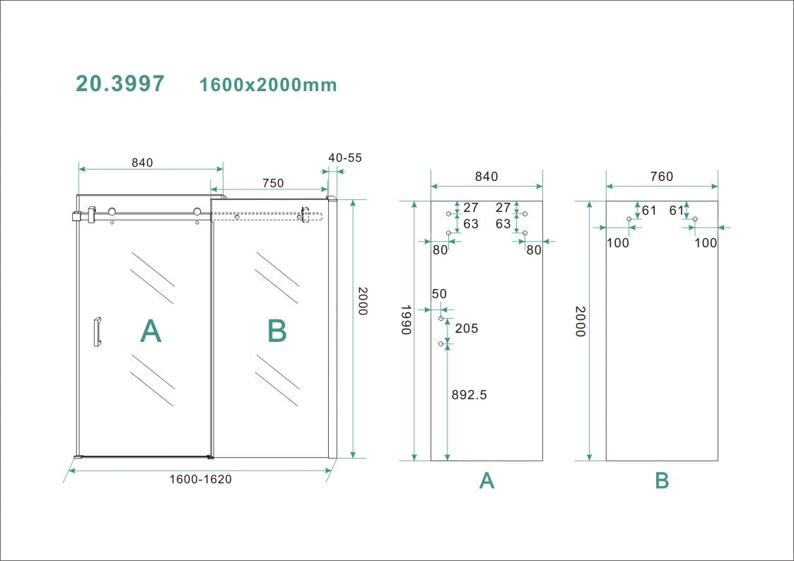 - Inbouwbreedte deur voor montage in nis: 160 – 162 cm.