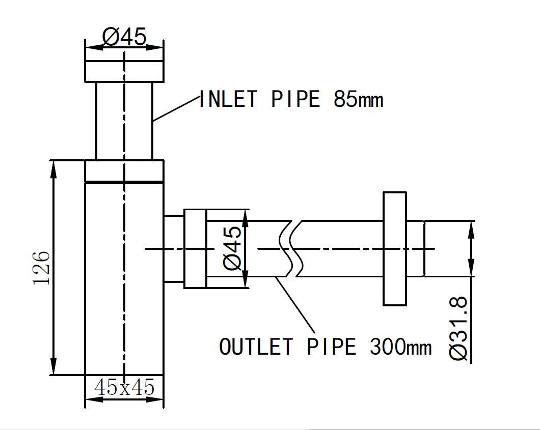 - Uitwendige buisdiameter afvoer: 3,2 cm.