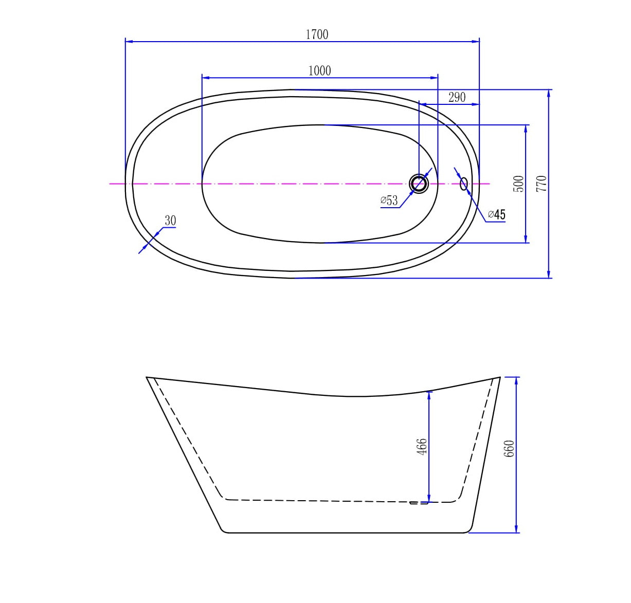 Wiesbaden Trapeze Vrijstaand Ligbad 170 x 77 cm.