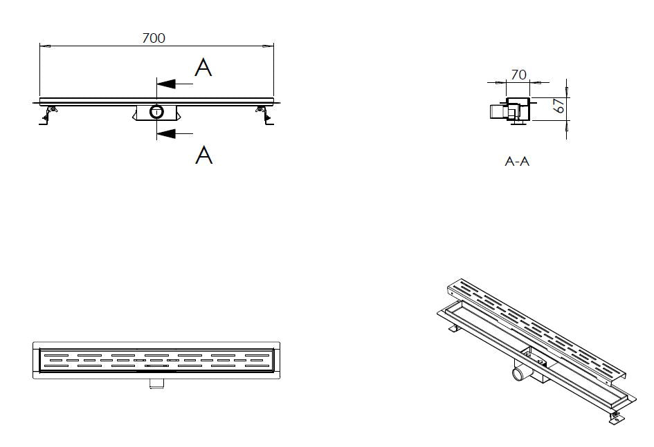 Wiesbaden zwarte douchegoot met flens - 70 cm.