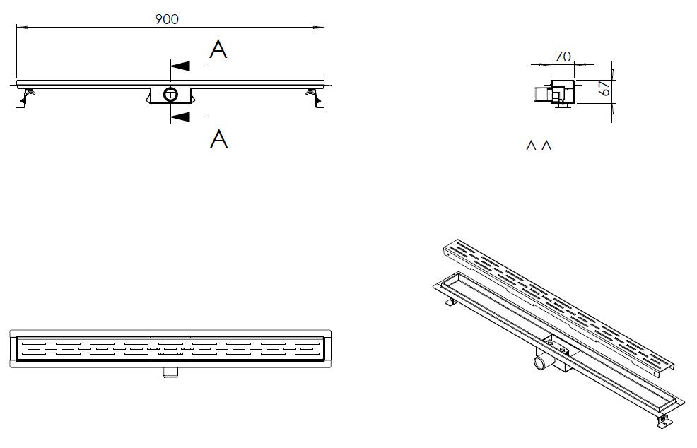 Wiesbaden zwarte douchegoot met flens - 90 cm.