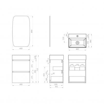 Dit moderne, glans witt,e ruimtebesparende badkamermeubel is slechts 45 cm breed waardoor het een perfecte oplossing is voor kleine badkamers. Daarnaast beschikt het meubel over 2 softclose lades en wordt het geleverd met een spiegel.