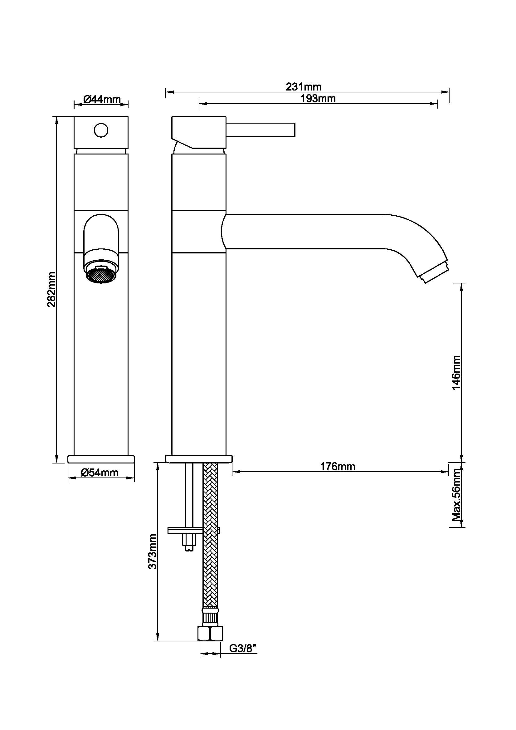- Aansluiting aanvoer: Flexibele druk slang (knel)