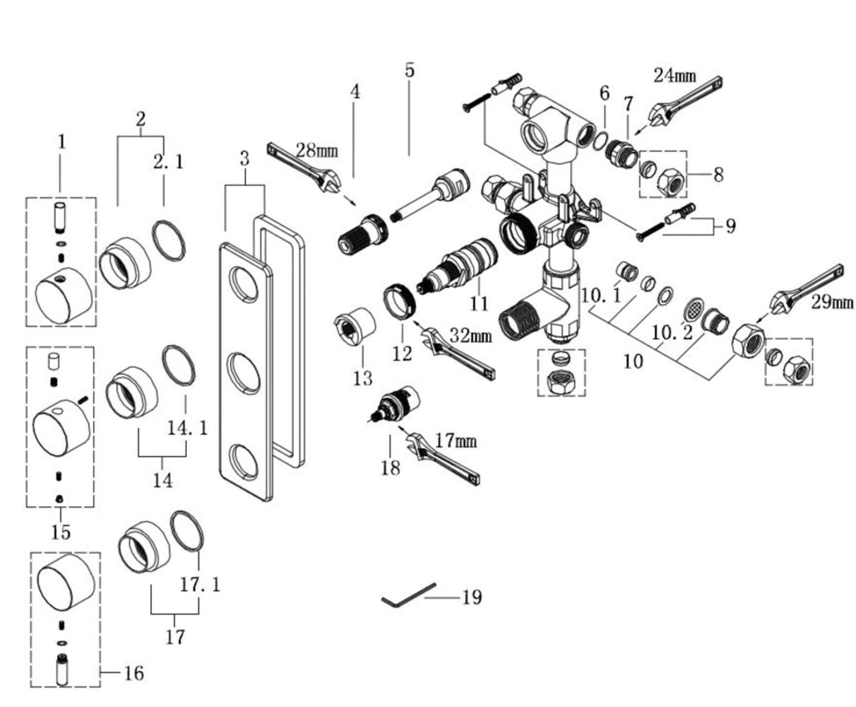 Caral inbouw 3-wegs douchethermostaat rond chroom
