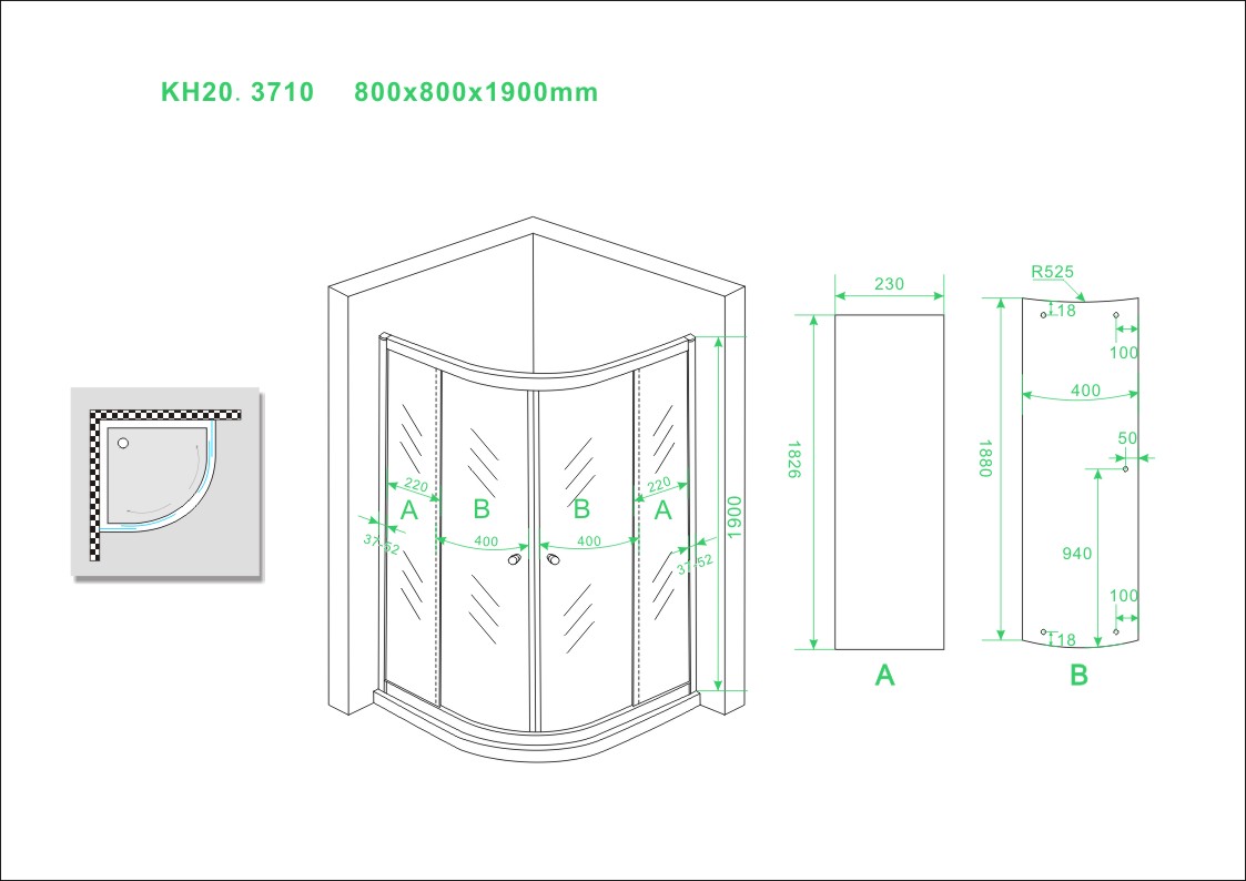 Handleiding eco kwart ronde douchecabine 80