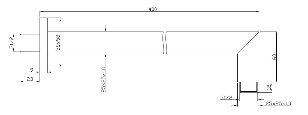 Luxe douche-arm vierkant muurbev.40cm chroom